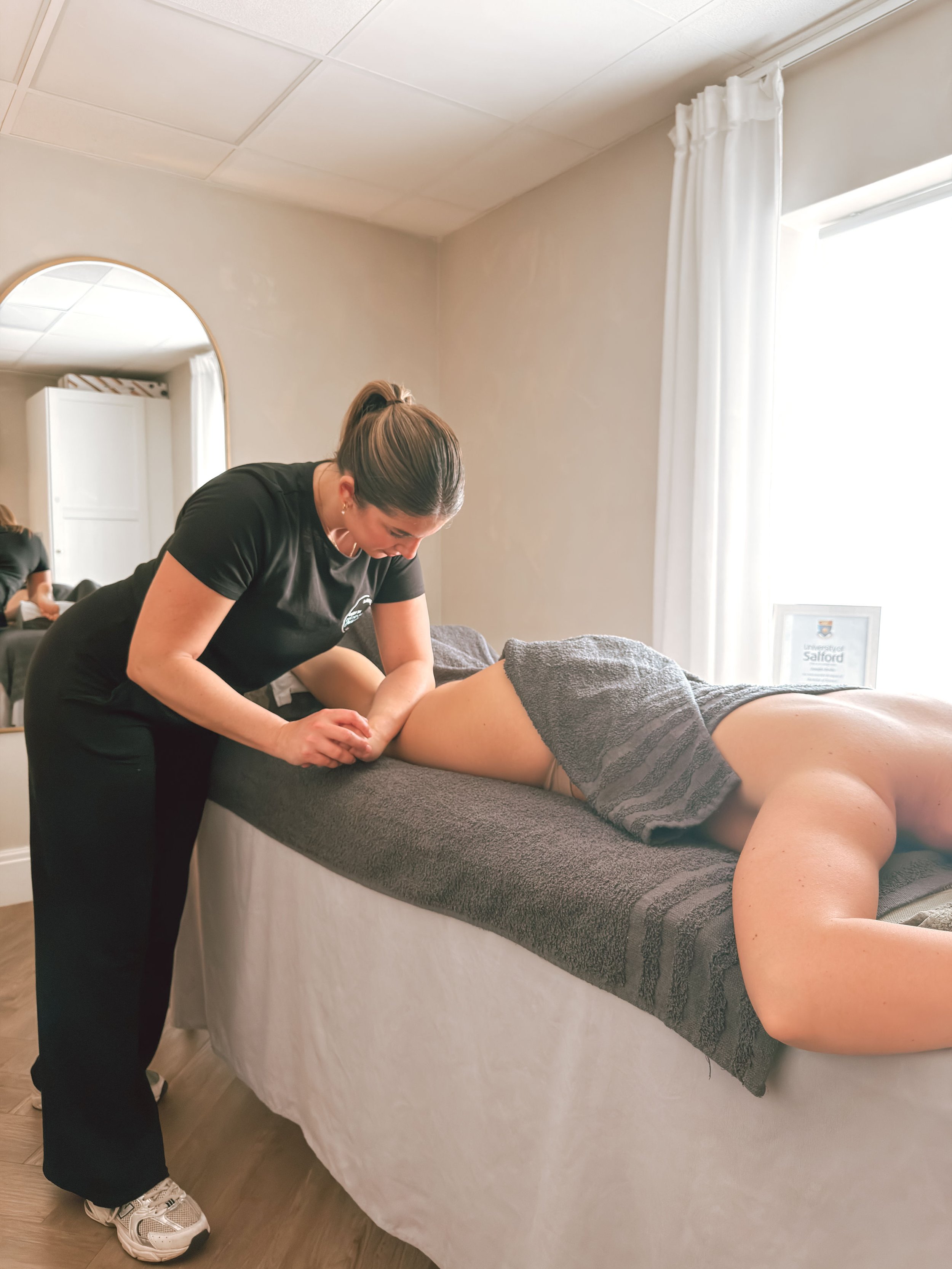 Alongside her practical experience, Carly is currently studying Sports Therapy at university, allowing her to combine academic knowledge with real-world, hands-on skills. Her approach is professional, confident, and client-focused, with treatments tailored to individual needs whether that’s easing muscular tension, supporting athletic recovery, or maintaining healthy movement.